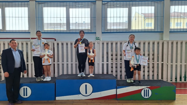 🥇команда ДОУ «Мичээр», с. Акана (Барабанская Сардаана, Васильева Айаана, Иванов Арчылаан), всего 80 прыжков.